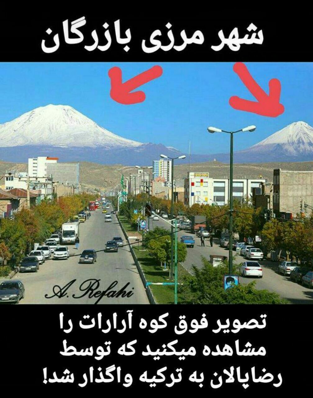 🟦 یکی از خیانت های مهمی که در زمان رضا خان اتفاق افتاد واگذاری رشته کوههای مهم و استراتژی آرارات بِه کشور ترکیه است! رضاخان در توجیه این خیانت می گفت: مهم نیست که سر این تپه از آنِ که باشد، آنچه مهم است این است که ما (رضاخان و آتاتورک) با هم دوست باشیم!!