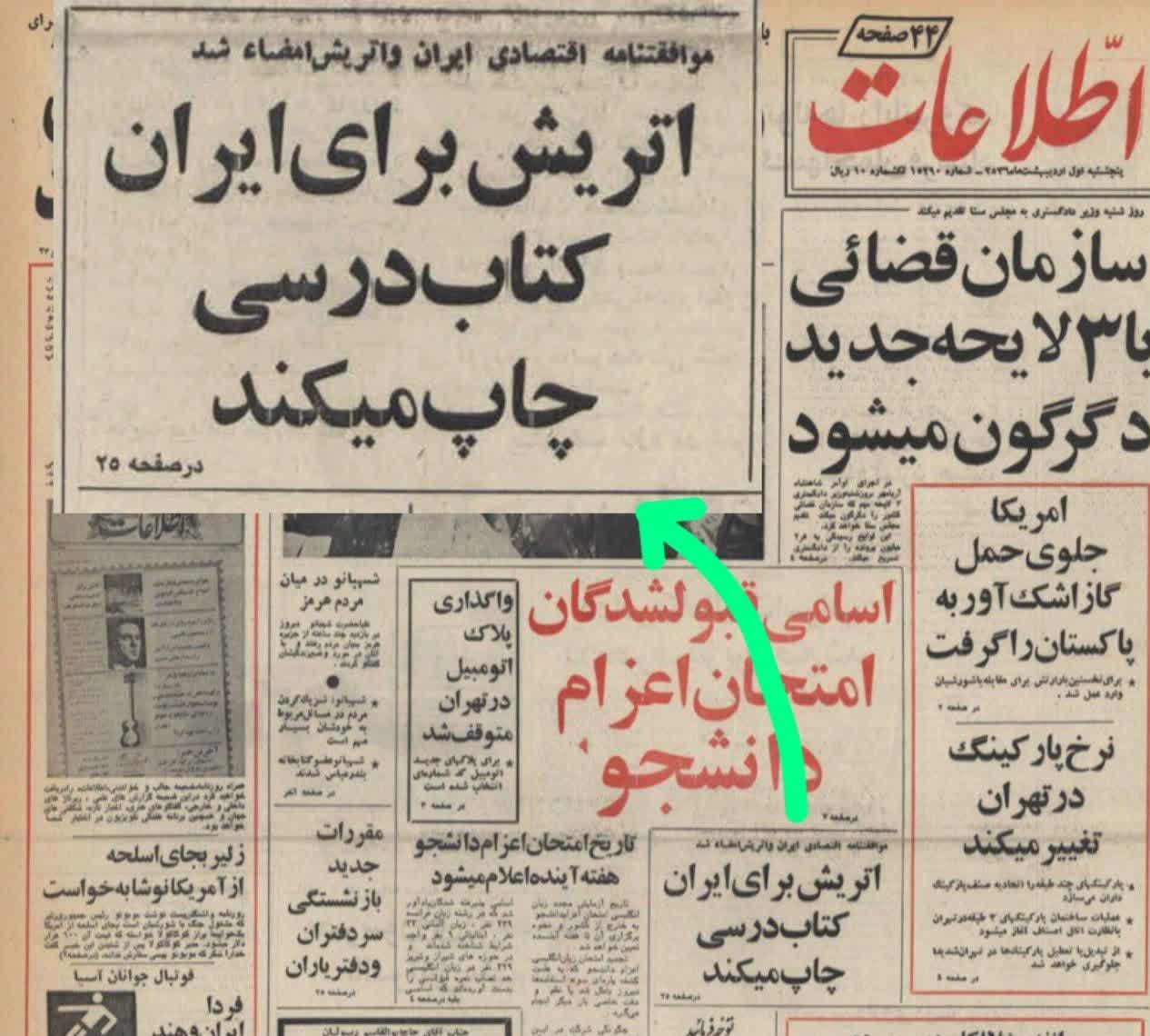 ❌ جالبه حدود یک ماه قبل از روزنامه اطلاعات تیر ۵۶، در آخر اردیبهشت ۵۶ همین خبر در روزنامه اطلاعات کار شده بود، امّا در یک ماهی که گذشته هیچ اتفاق و حتی قولی از طرفِ مسئولینِ پهلوی داده نشده! 👇