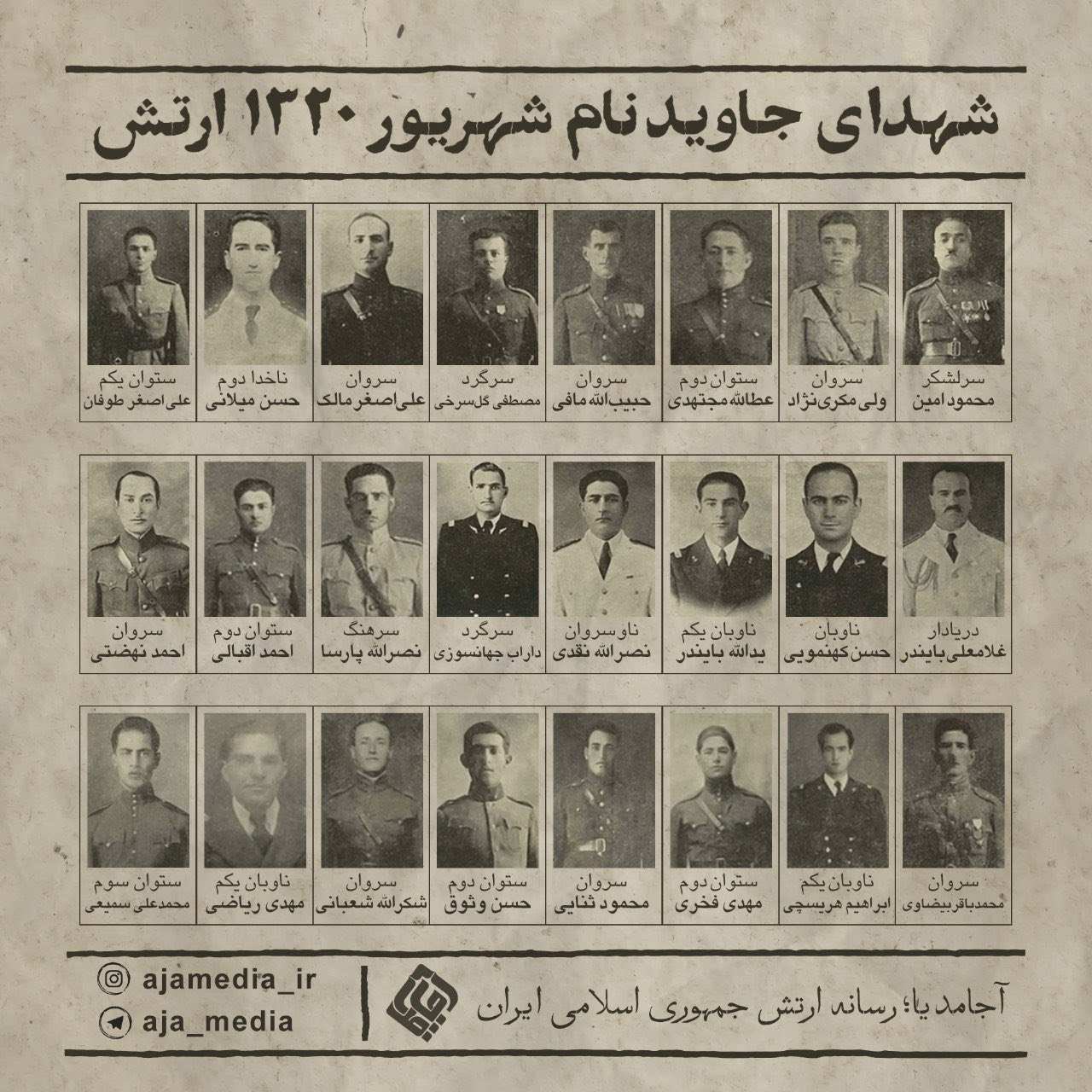 🟦 تنها ۲۴ افسر و درجه دار ارتش که در شهریور ۱۳۲۰ با وجود فرمان خائنانه ترکِ مقاومت و حتمی بودنِ شکست، تا پایِ جان در مقابلِ قوایِ روس و انگلیس ایستادگی کردند.