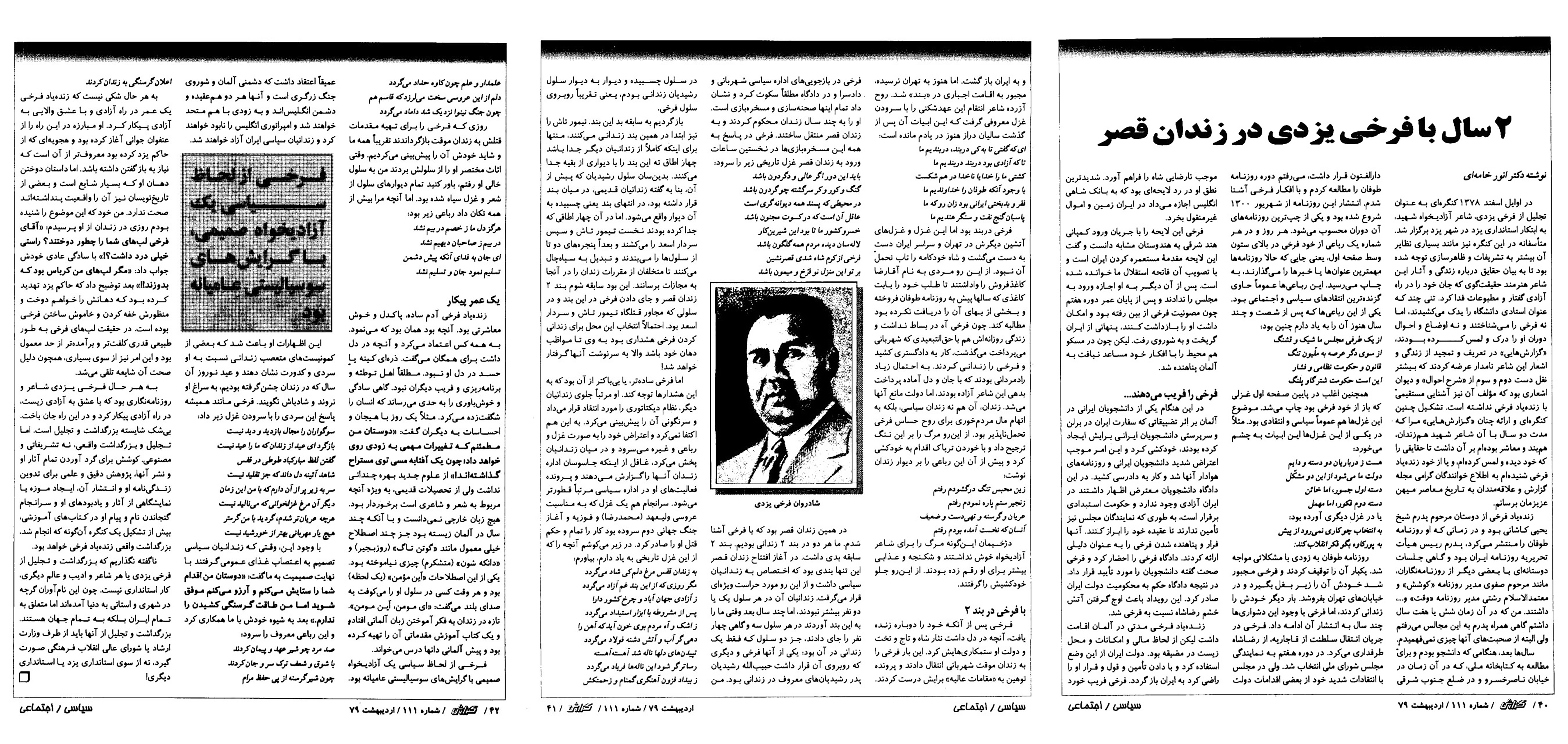 دو سال با فرّخی یزدی در زندان قصر؛ نوشته: دکتر انور خامه ای؛ مجله گزارش، اردیبهشت ۷۹